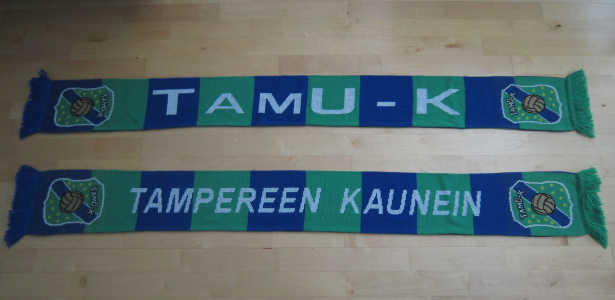 TamU-K scarfs have arrived and I have to say they look really good. I like the simple classic bar design. The text on the flip side translates to ”the most beautiful in Tampere”, a slogan that the club has been using. The first chance to buy a scarf is at TamU-K’s next match at Pyynikki stadium next Saturday. One scarf costs 20 euros.
